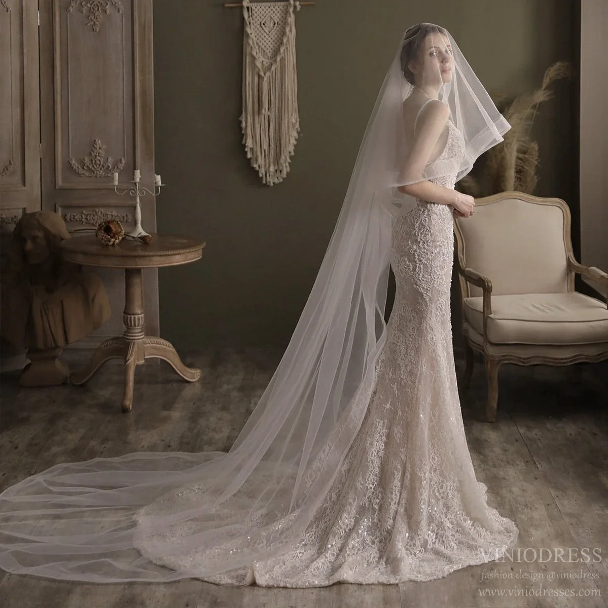 Make a breathtaking entrance with a cathedral wedding veil, a long veil that flows in elegance and timeless romance. This dramatic wedding veil is perfect for the bride dreaming of a fairytale walk down the aisle.