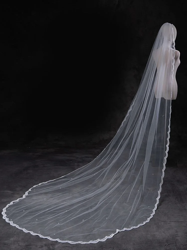 Dewdrop Mantilla Cathedral Veil with Pearls